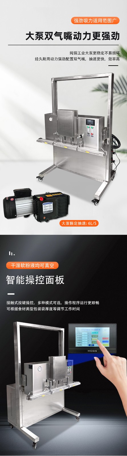 硬件適配保障:這類設(shè)備的外殼和真空室多采用不銹鋼材質(zhì),抗腐蝕、不易生銹,即便接觸醬料、海鮮等帶水分的物料,也能穩(wěn)定運行,且清潔方便,可避免潮濕環(huán)境對機器的損壞。部分機型還針對液態(tài)物料優(yōu)化了密封結(jié)構(gòu),防止包裝時液體滲漏影響設(shè)備部件。