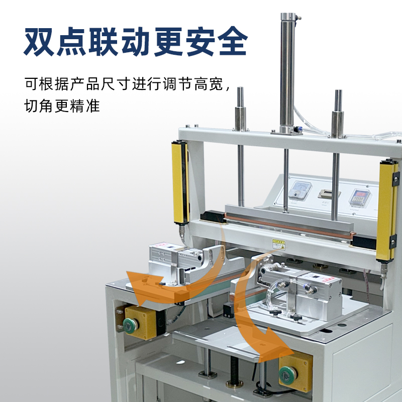 - 切角原理:一般利用刀具或模具,在封口完成后,通過機械傳動或氣動裝置驅(qū)動刀具,按照預(yù)設(shè)的角度和尺寸對包裝材料的邊角進(jìn)行切割,形成所需的切角形狀。