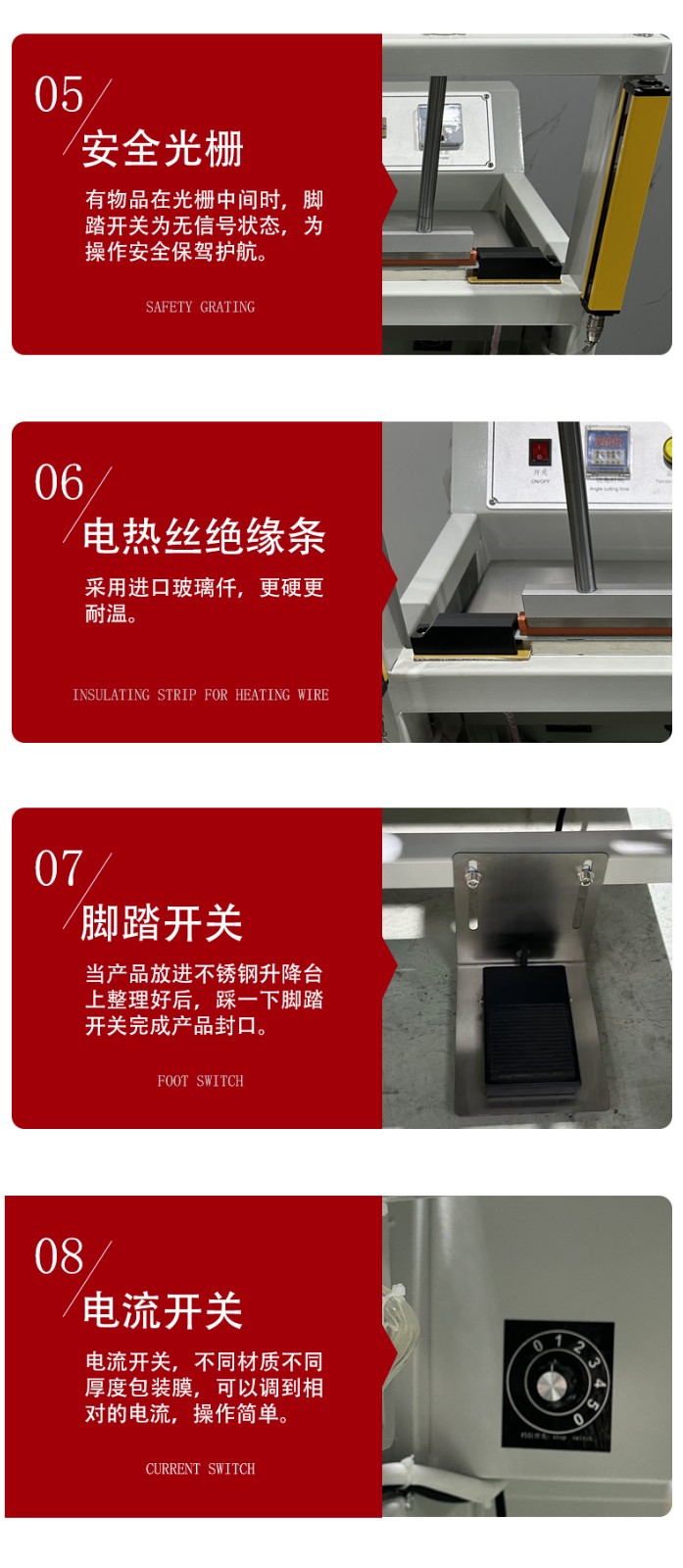 - 封口原理:主要采用熱封技術(shù),通過發(fā)熱元件對包裝材料進(jìn)行加熱,使其受熱融化,然后在壓力作用下將兩層材料融合在一起,達(dá)到封口的目的。