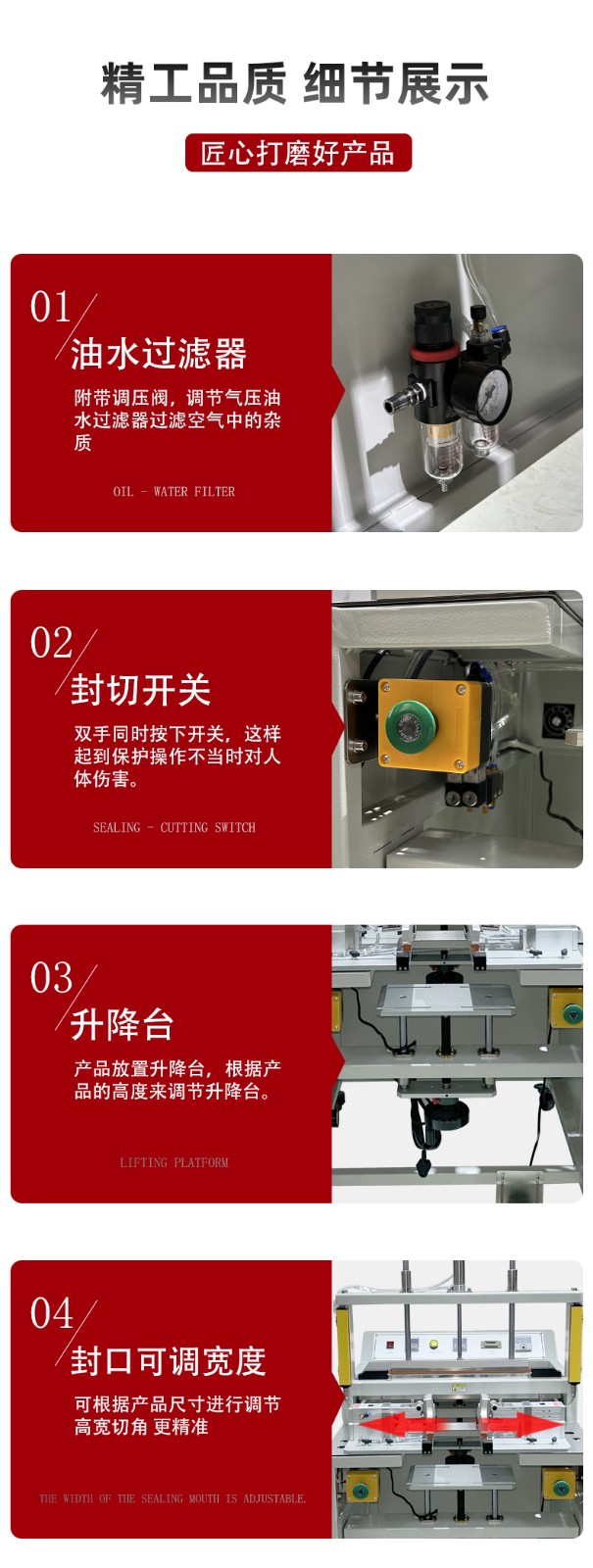 - 封口質(zhì)量好:采用先進(jìn)的熱封技術(shù)和優(yōu)質(zhì)的封刀材料,可使封口牢固、平整、美觀,密封性好2。